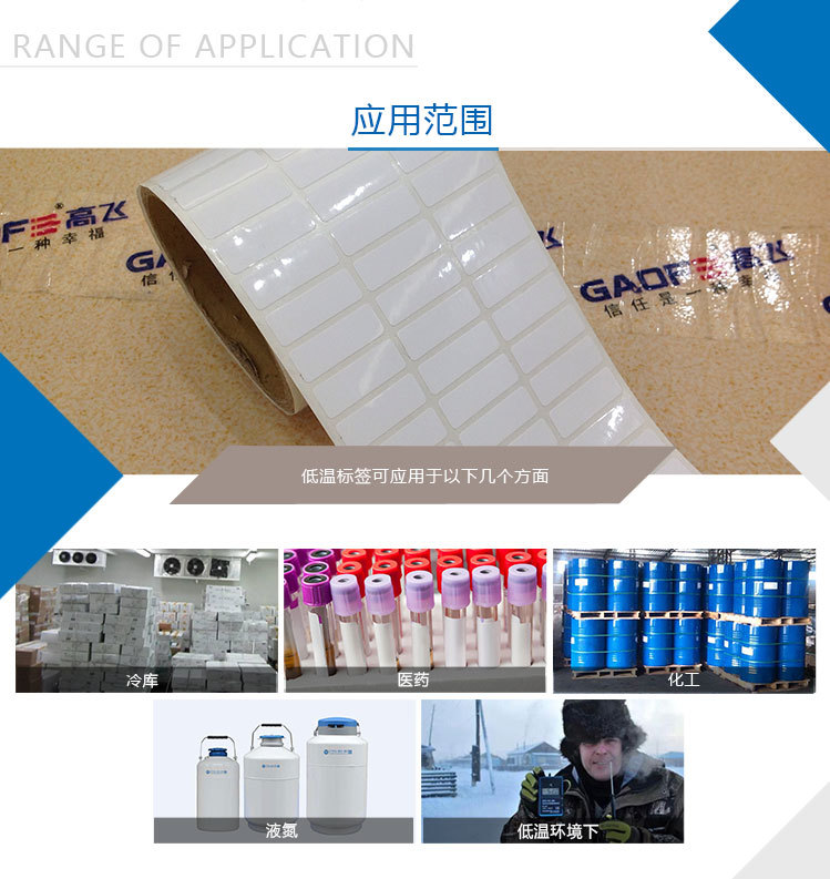 標簽貼試到承貼物后,在-70度的環(huán)境中長期使用,而標簽不易脫落,便于冷庫物品的管理與查詢。