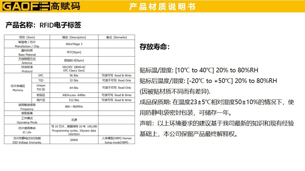 RFID標(biāo)簽 73MMx20MM 電子標(biāo)簽 高賦碼