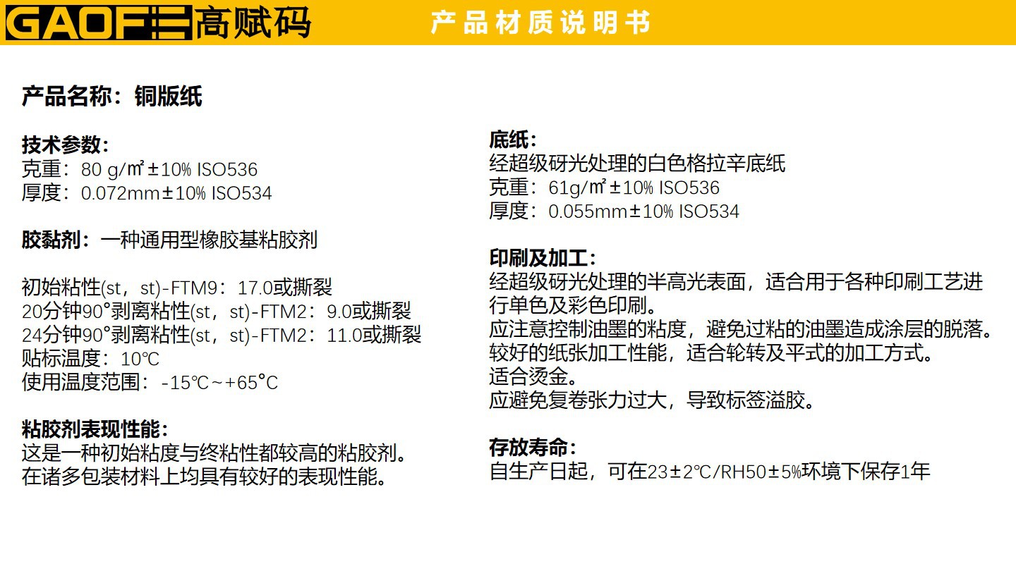 印刷及加工: 經(jīng)超級砑光處理的半高光表面,非常適合用于各種印刷工藝進(jìn)行單色及彩色印刷。