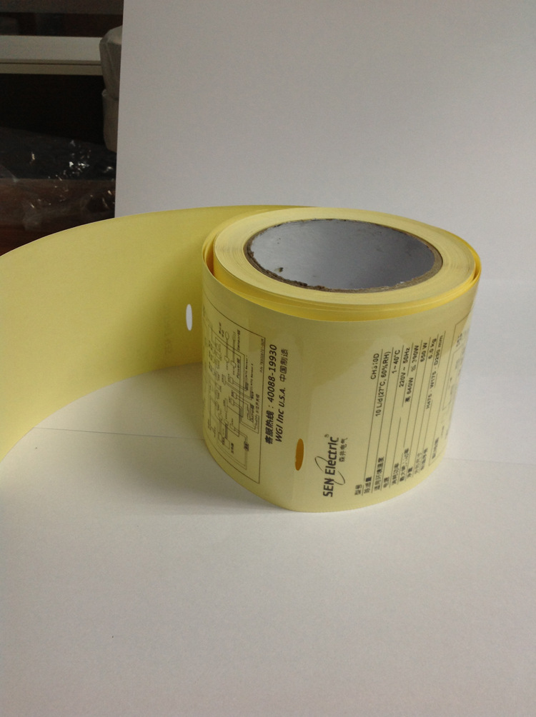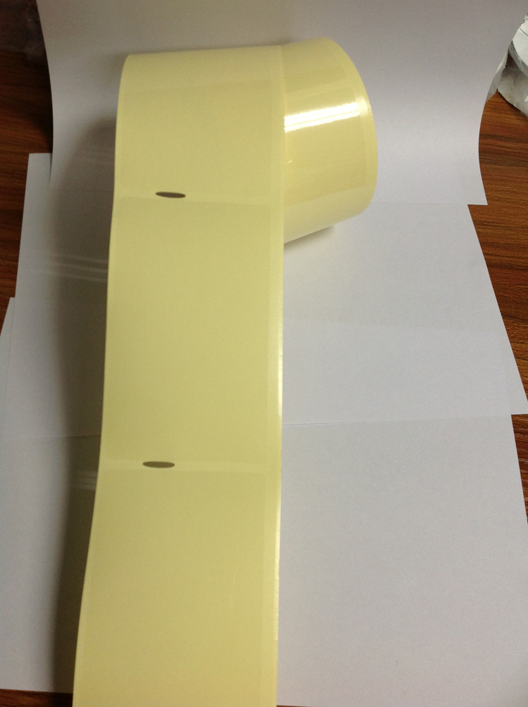 基材:25um(或50um)涂層處理聚酞亞胺薄膜,未經(jīng)涂層處理的聚酞亞胺不能滿足性能要求、涂層處理能更加地滿足工藝上所需的打印條碼性以及對材料顏色與光澤度的要求。