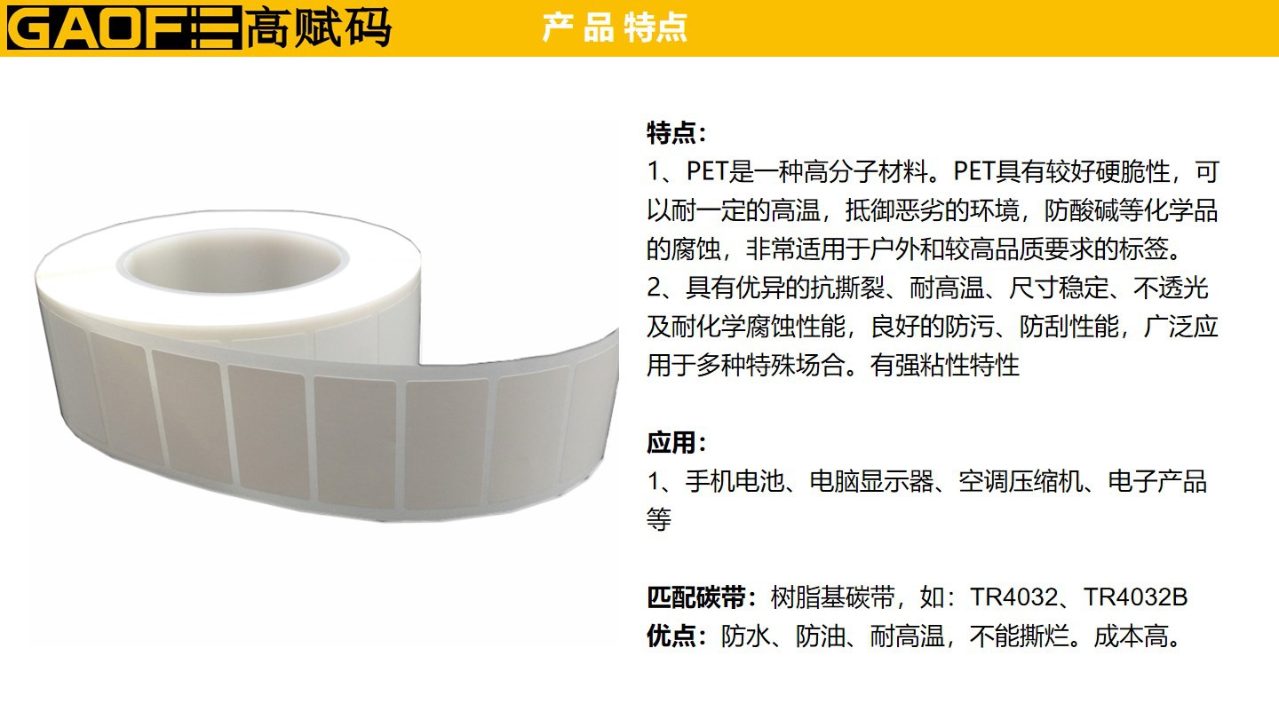 7871 超粘不干膠PET標(biāo)簽 強(qiáng)粘PET貼紙 41mm*23mm PET標(biāo)簽-高賦碼