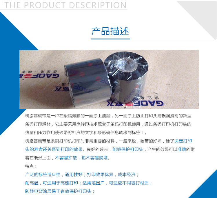 洗水嘜碳帶品質(zhì)高、高速打印性能,優(yōu)異的耐磨擦、耐熱、耐腐蝕、耐久性能,耐磨能滿足各種苛刻環(huán)境要求,高敏感度,確保優(yōu)異的圖像打印效果,防靜電背涂層,有效保護(hù)打印頭。