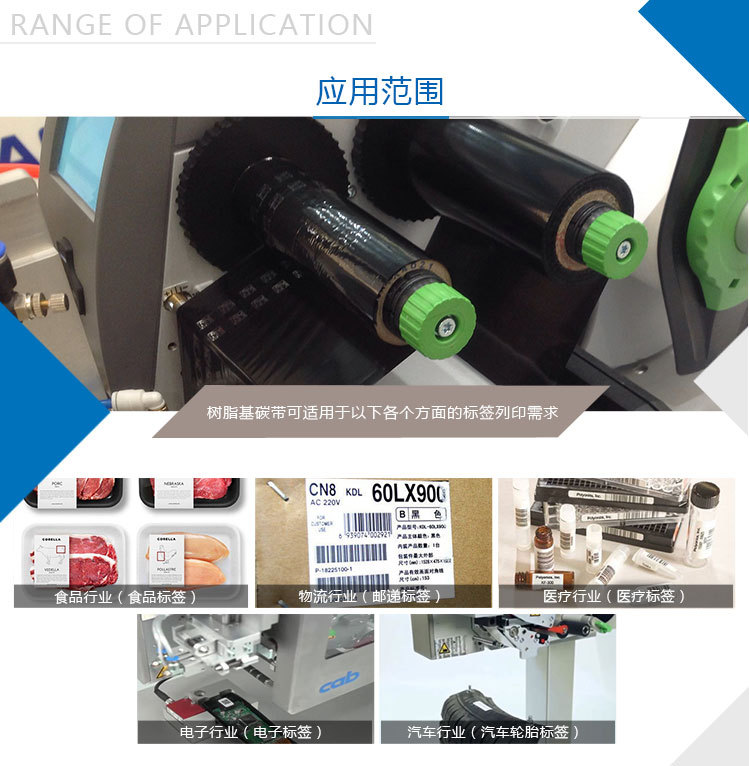樹脂基碳帶是一種具有較強耐刮擦性,極強耐腐蝕性和長效性的打印耗材,在較低或適當溫度內(nèi)打印,打印更加清晰,防靜電背涂層,更加有效地保護您昂貴的打印頭,尤其適合用于電器標簽打印,適合在各類條碼打印機上使用。