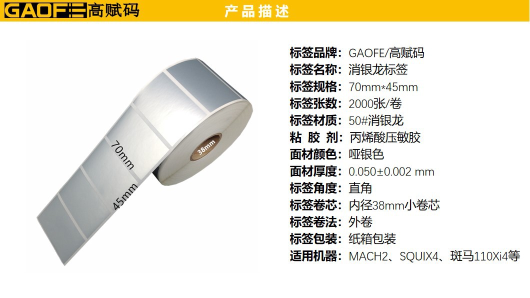 消銀龍標簽 耐高溫100度標簽 70mm*45mm 銀色標簽 啞銀龍貼-高賦碼