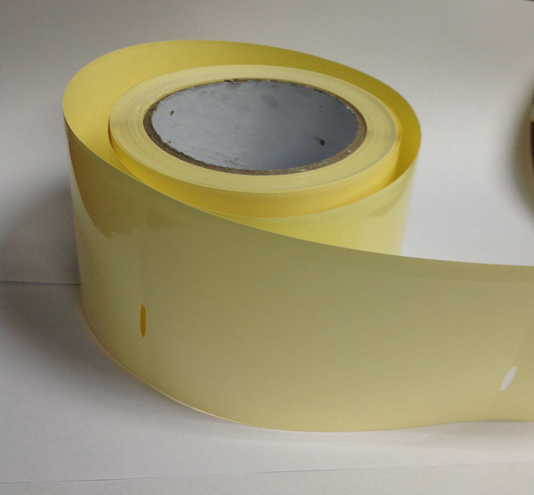 基材:25um(或50um)涂層處理聚酞亞胺薄膜,未經(jīng)涂層處理的聚酞亞胺不能滿足性能要求、涂層處理能更加地滿足工藝上所需的打印條碼性以及對材料顏色與光澤度的要求。