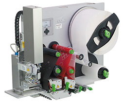 墊片在標(biāo)簽剝離板前就會定位。標(biāo)簽在打印同時就會由墊片所吸附。氣缸會將標(biāo)簽放置于產(chǎn)品上。短距旋轉(zhuǎn)氣缸會水平移動到貼標(biāo)位置上并放置標(biāo)簽于產(chǎn)品上。氣缸行程長度取決于標(biāo)簽剝離板至產(chǎn)品的最大距離。
