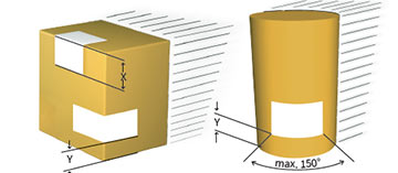 可從包裝的所有方向進(jìn)行產(chǎn)品的平面、圓柱體及折角貼標(biāo)。
