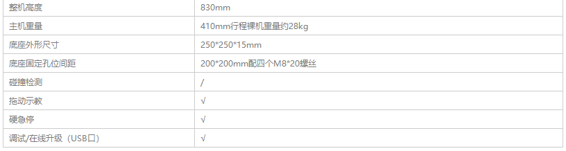 支持拖動示教、硬急停、調(diào)試/在線升級(USB口)